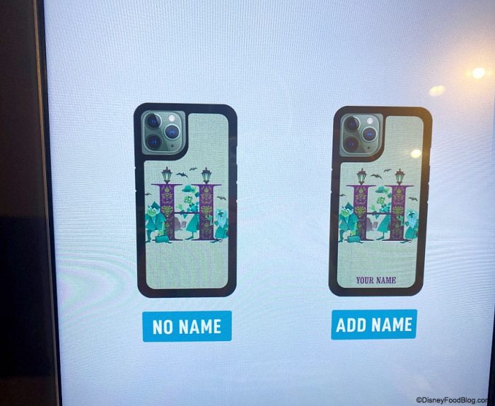 There are a few different options when it comes to personalization. Depending on your taste (and initials) you have the ability to choose between adding a name to the case or leaving it blank. The Haunted Mansion style might just be one of our favorites, featuring the Hitchhiking Ghosts and an H adorned with a mystifying design.