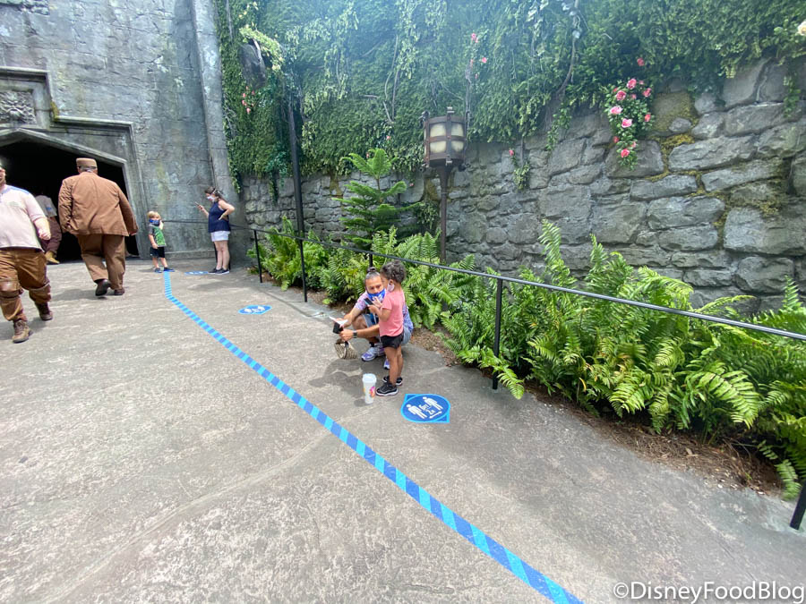 And while we’re finally starting to get the hang of using new Universal’s virtual line system, we noticed something we wanted to share with you guys as we disembarked from Hagrid’s Magical Creatures Motorbike Adventure — a sectioned off rider swap area!