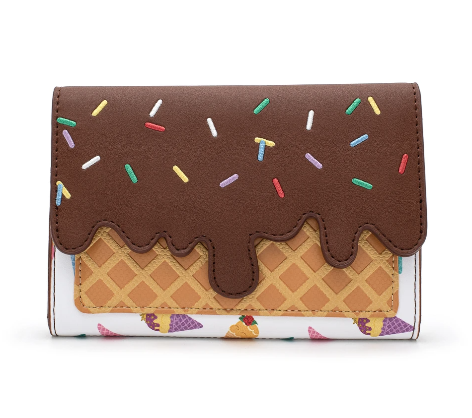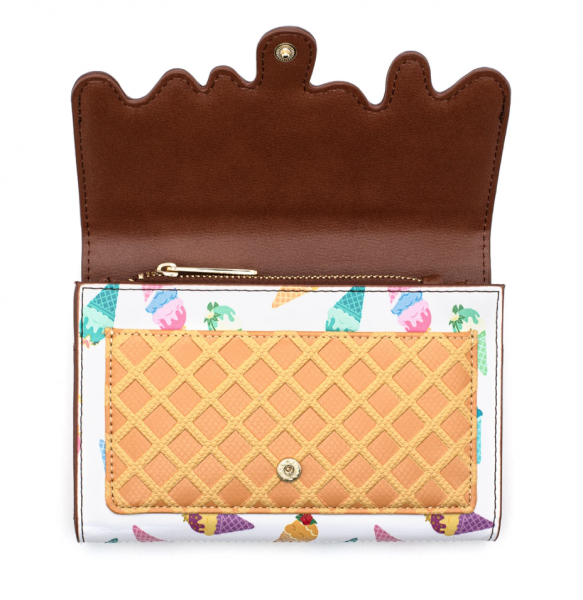 We just really need to give Loungefly some props on that DEDICATION of making the wallet’s flap a literal drip of chocolate on top of the ice cream. And while we’re at it, let’s admire the little sprinkles and waffle cone on the front too!