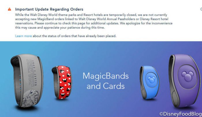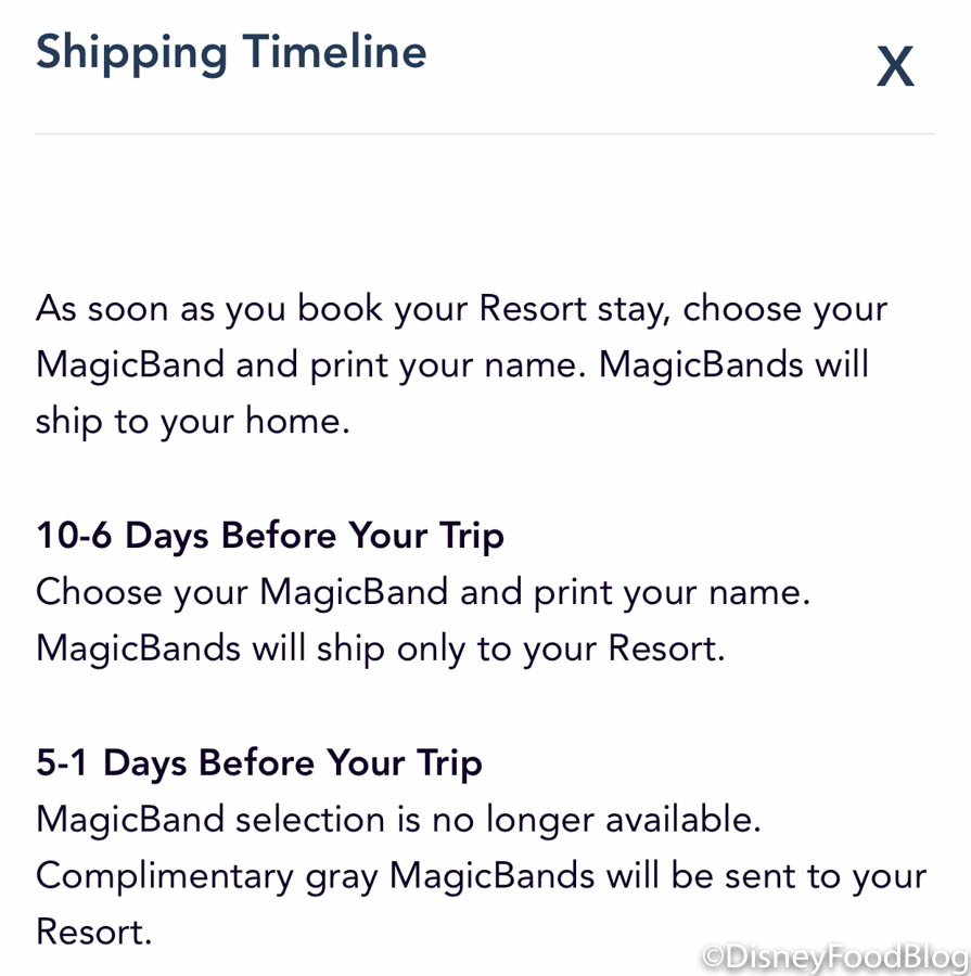 Prior to the closure, Disney World advised guests to order their MagicBands at least 11 days before your arrival date if you would like your MagicBands shipped to your home and at least 6 days before your arrival date to have them shipped to your Resort hotel. Disney World’s website still states this as their policy.