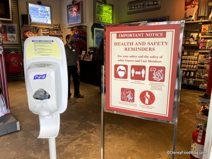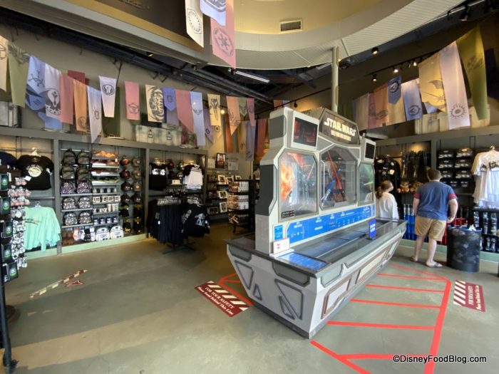 Upon entering Star Wars Galactic Outpost, you’ll find hand sanitizer at the ready, and you’ll notice distance markers at select spots on the floor to promote safe distancing between guests.