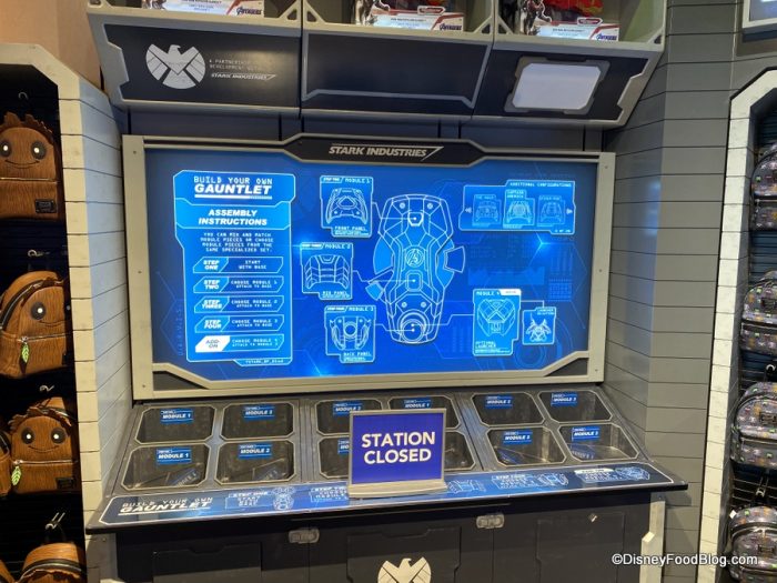 Similar to the Build-Your-Own Lightsaber, Super Hero Headquarters offers a Build Your Own Super Hero Gauntlet… usually. That experience is likewise closed for now.