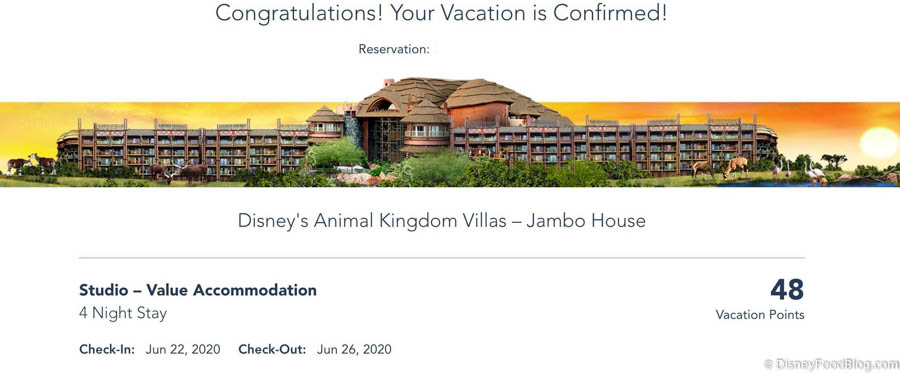 This morning, we were able to successfully book a stay at Animal Kingdom Lodge Villas — Jambo House for a June 22nd check-in through the DVC website, despite the fact that it is still not listed under the reopening properties.