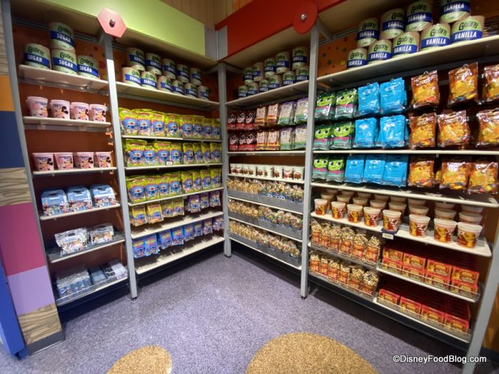 Now, something that Goofy’s Candy Company is rather famous for are Create-Your-Own Snacks, which give guests the opportunity to customize treats like Marshamallow Wands, Krispy Treats, and more with various toppings and candy drizzles.