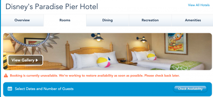 And we ran into the same situation when we checked Disney’s Paradise Pier Hotel.
