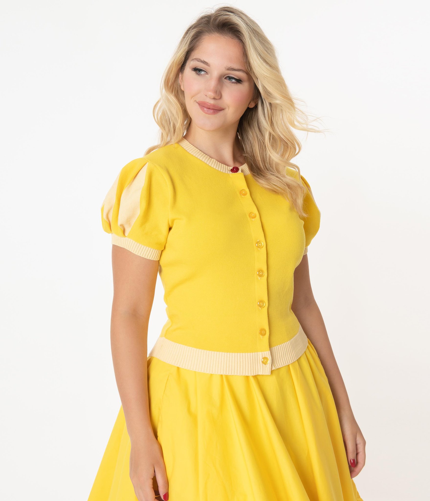 And finally, this Elhoffer Design Yellow Rose Princess Cardigan is great for Disney-bounding! With puffy sleeves and a red rose button at the neckline, you’ll be the Belle of the ball. For $84 you can grab this cardigan and live your own tale as old as time!