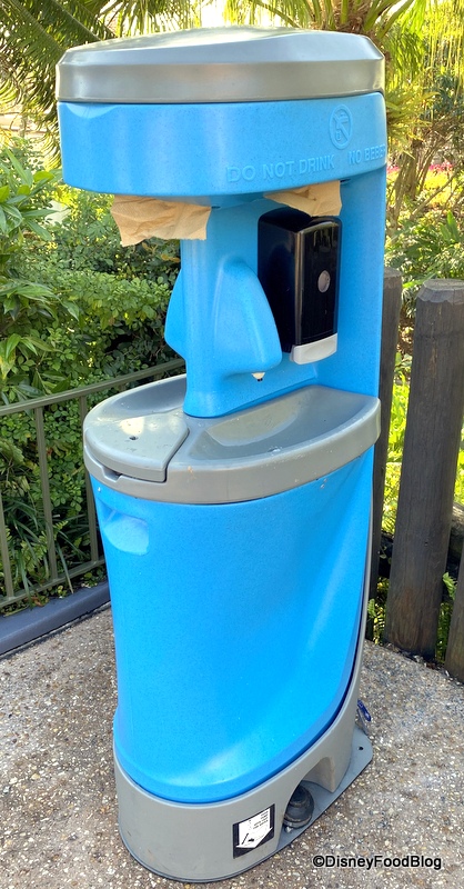 Luckily, the Disney parks have got your back! Before they closed, Disneyland and Disney World installed several new hand sanitizing locations, especially around restaurants and restroom areas before they closed. Handwash stations and copious amounts of hand sanitizer can currently be found around Disney Springs as well.