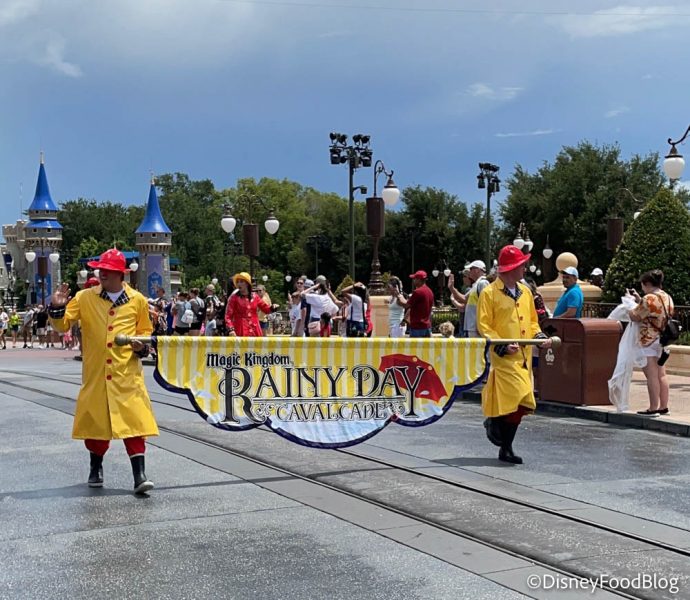 They’ll send out a Rainy Day Cavalcade instead so you can still spot your favorite characters! In the past, we witnessed a cavalcade at Mickey’s Not So Scary Halloween Party, during which the pirates carried mops. So, basically, it was the cutest thing ever!! And, we’ve seen Mickey’s Very Merry Christmas Party showcase a few characters in their holiday best, waving to guests on Main Street from a trolley.