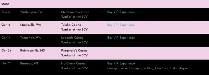 Now previously, Taylor Dayne’s tour schedule listed Eat to the Beat performances on October 9th and 10th.