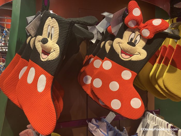 Now that we’ve trimmed the tree, let’s take a look at the new stockings we spotted, each priced at $29.99! Of course, you can choose either a Mickey Stocking or a Minnie Stocking!