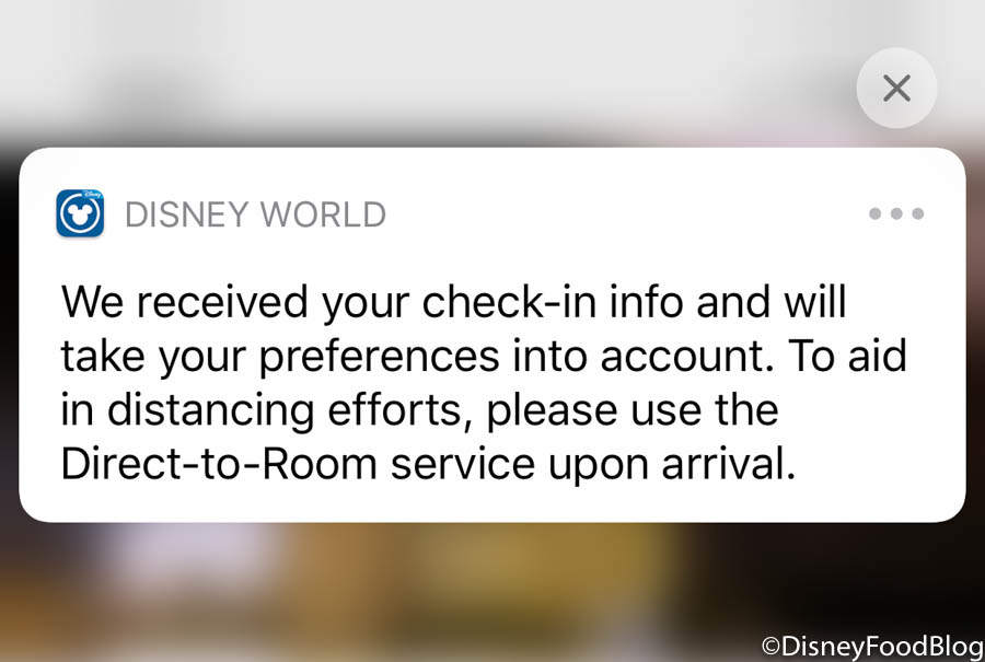 Once we finished our online check-in, we received this confirmation screen and were instructed to use Disney World’s Direct-to-Room service upon our arrival.