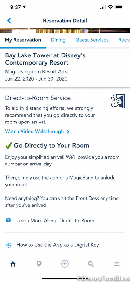 Disney World is encouraging all guests to use online check-in since it’s quick, easy, and perhaps most importantly — contactless! You can do this on either Disney’s website or using the My Disney Experience app. Once you begin to check-in, Disney will ask you for your contact information so they may communicate with you via text. And don’t forget — starting June 22nd, guests will be able to access a way to virtually chat with Resort Cast Members via the My Disney Experience app.