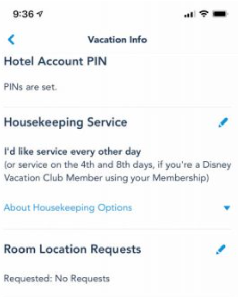 Standard check-in will still be available, and guests whose MagicBands have been shipped to the resort will be able to pick them up at the front desk. For the next step, Disney asked us what our estimated arrival time was and if we’d like to have housekeeping service every other day (or every 4th and 8th day for Disney Vacation Club members) or decline it completely.