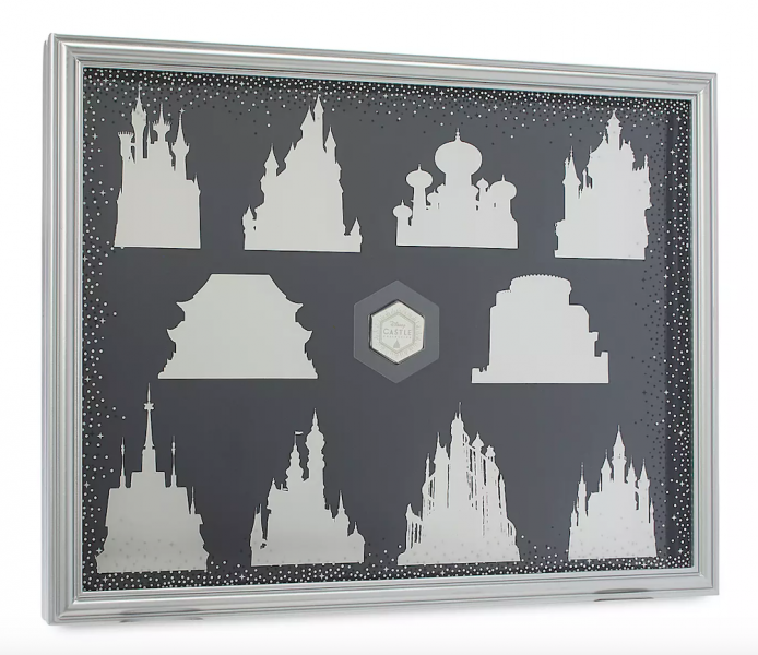 Like we saw with the first series that featured Cinderella, the Frozen series will include a puzzle, ornament, journal, pin, and light up castle figurine! There are additional pieces in the collection to grab if you want to display all of your lovely treasures, like this pin frame!