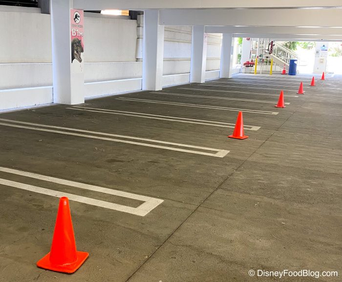Like CityWalk in Orlando, self-parking is staggered, with every other space coned off. In Orlando, those coned off spaces were eventually filled as more cars came in, but it was so quiet the day we visited Hollywood, there was no need to do so!