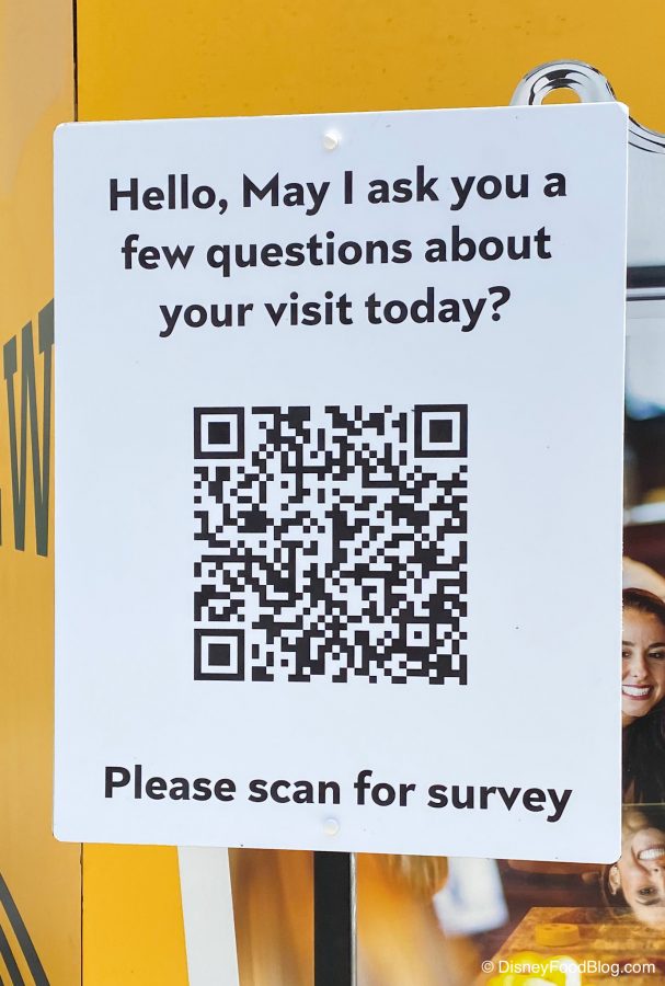 When it’s time to leave CityWalk, several signs were present with QR codes for guests to scan to take a survey on their experience.
