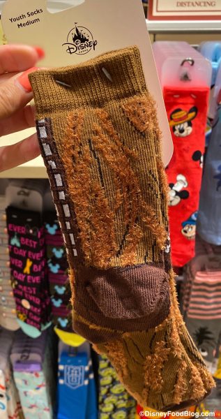 We spotted these fuzzy Chewbacca Youth Socks at World of Disney — and they must be a hot commodity because there was only one pair left when we found them!