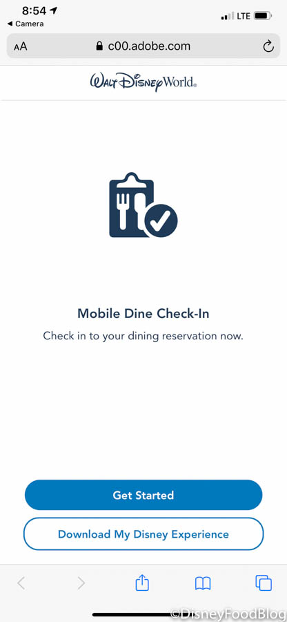 Once we scanned the sign with our devices, it automatically launched the My Disney Experience app and pulled up Mobile Dine Check-In. We scanned the QR code using the normal camera feature on our smartphones.