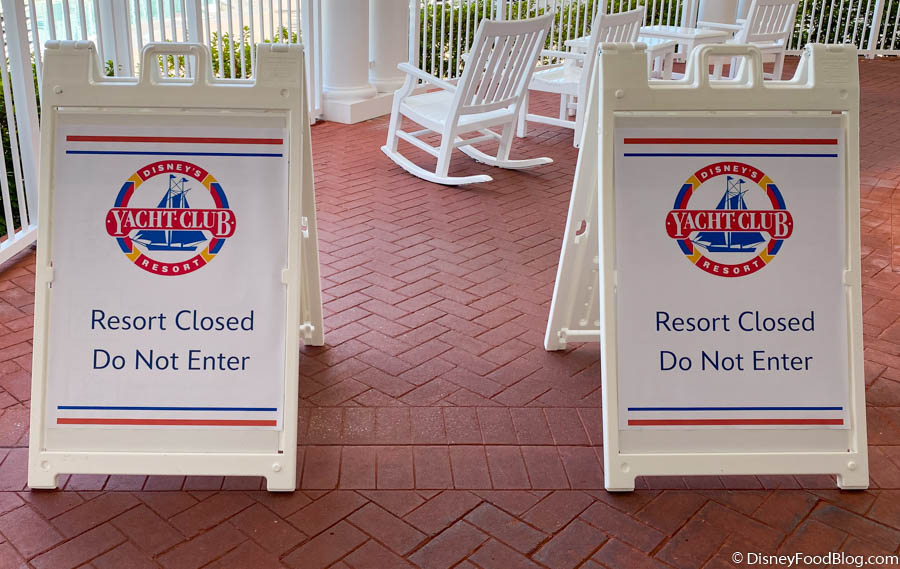 All of the pathways to Disney’s Yacht Club Resort were blocked off with the closure of the other resort.