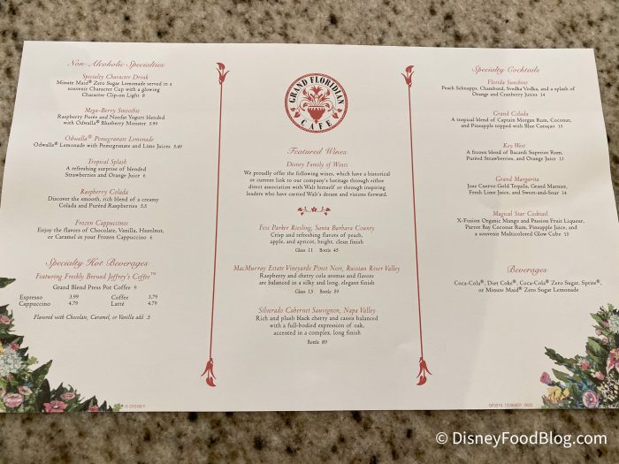 Grand Floridian Cafe has a QR Code menu too, but since the Disney World website was being unstable, our server grabbed us a paper menu just in case.