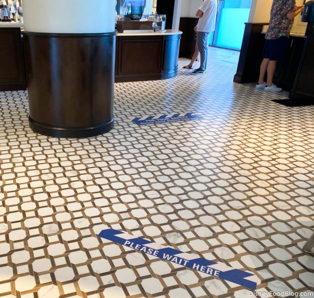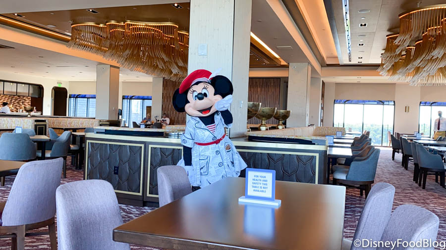 We stopped in for a meal at Grand Floridian Cafe. Many of the tables were marked as unavailable for physical distancing.