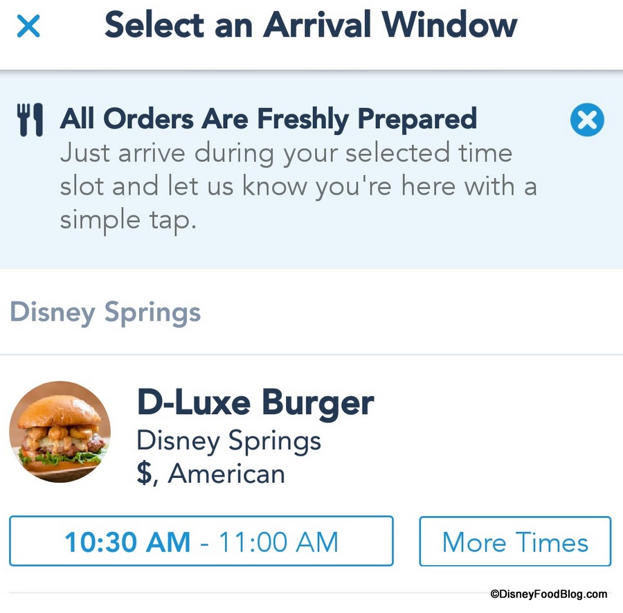 While the parks were closed, though, there was an increase in Mobile Order locations in Disney Springs. My Disney Experience has also updated payment information with more accepted contactless methods of payment, as well as implemented windows of time for Mobile Order pick-ups. Previously, these time windows were only seen in Disneyland.