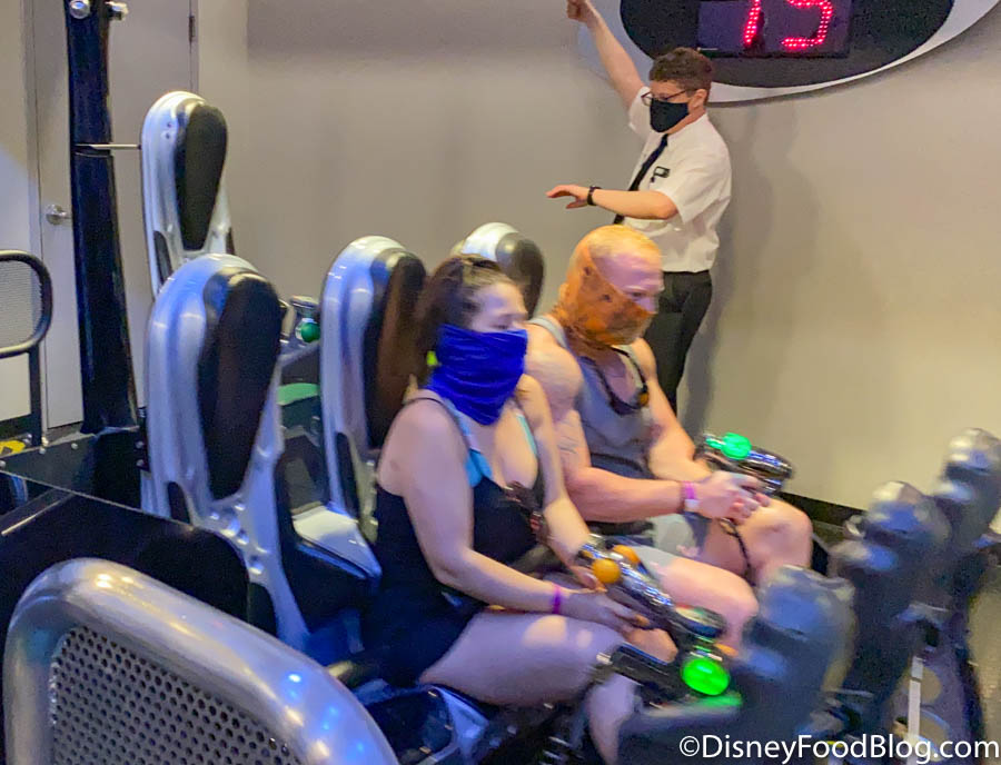 On top of guests using hand-sanitizer before many attractions, Team Members also wipe down the seats and even hand out 3D goggles themselves so multiple guests aren’t handling them.