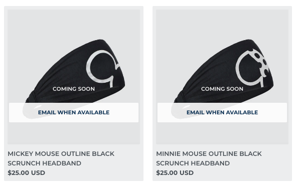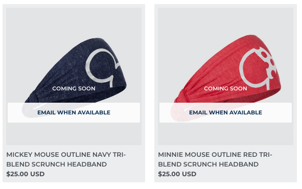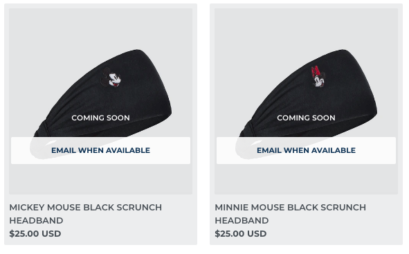 And rounding out the summer release, we have the Mickey Mouse Gray Scrunch Headband and Minnie Mouse Gray Scrunch Headband! These cuties are available for $25!
