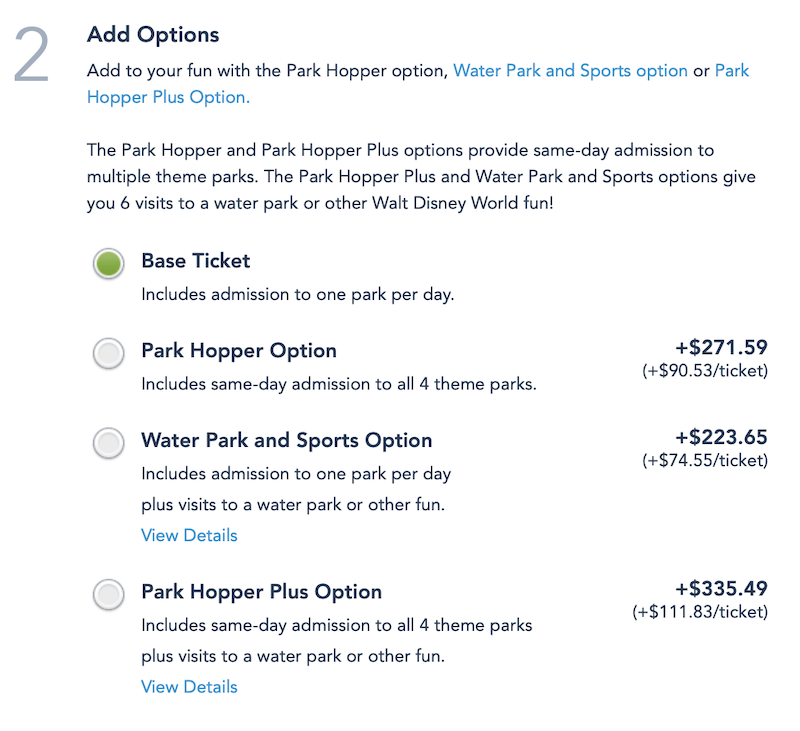And while Disney has shared that Park Hopping is unavailable for the time being, it is listed as a 2021 ticket option.