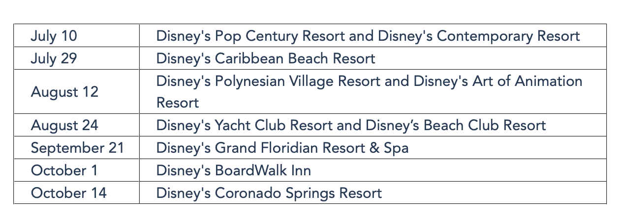 Select Disney World resorts have reopened this week. And recently, Disney shared the reopening dates of a few more Disney hotels that will open at a later date.