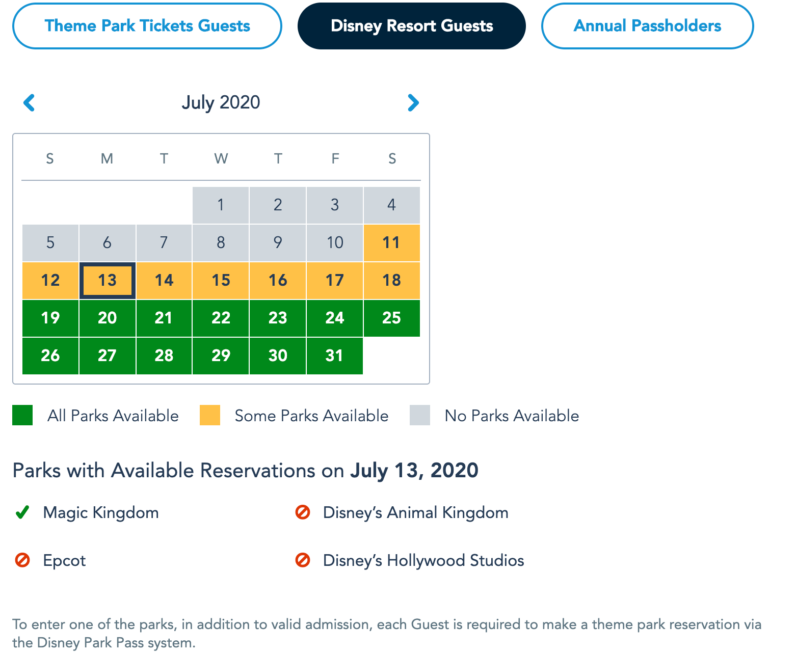 And now Disney’s Animal Kingdom is also filling up! Previously, we reported reservations for Disney World’s wildest theme park had already been distributed for July 14th, but now it looks like we’ll be adding July 13th to the list of full dates, too!