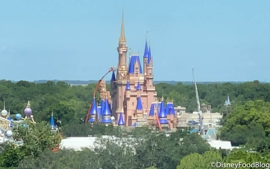 Honoring Cinderella’s 70th-anniversary, Magic Kingdom’s icon is receiving a new soft rosy-pinkish hue. In fact, we recently saw this project had started back up and work seems to be progressing rather quickly!