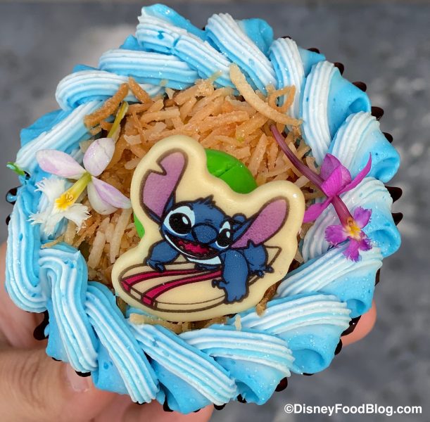 And this year, Captain Cook’s at Disney’s Polynesian Village Resort came through with a Stitch snack to celebrate the holiday! We snagged this adorable Stitch Cupcake that features our favorite blue alien!