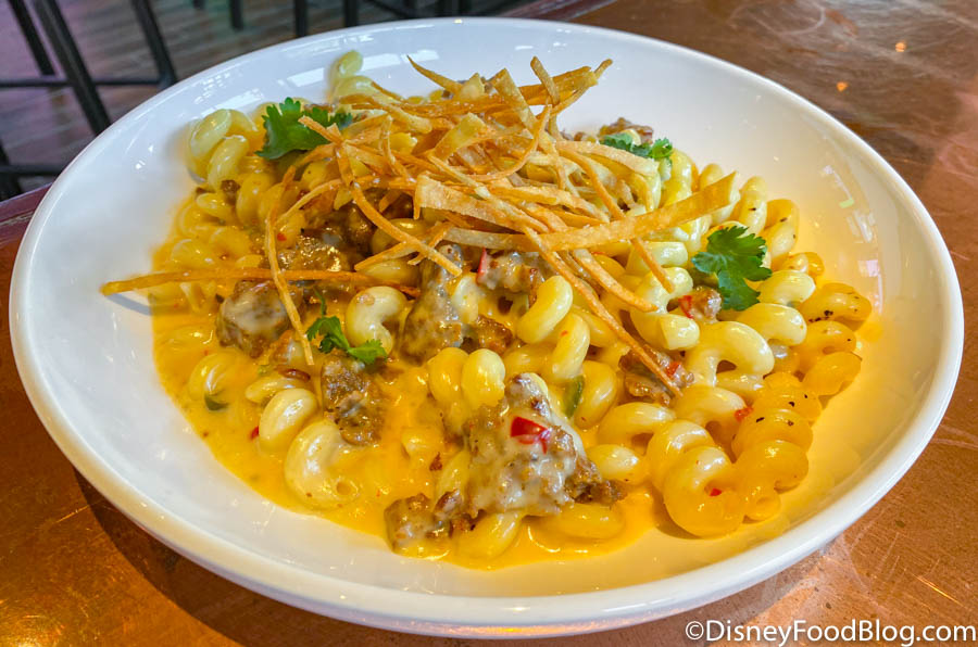 Next up, we went with the hearty Tex Mex Mac N’ Cheese. The dish costs $16 and combines spicy chorizo with roasted jalapeno, pepper jack cheese sauce, crispy tortilla strips, cilantro, and cavatappi pasta.