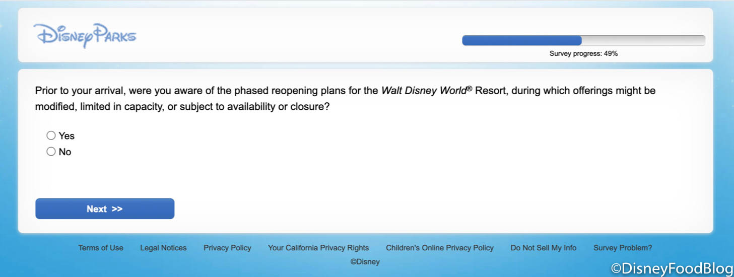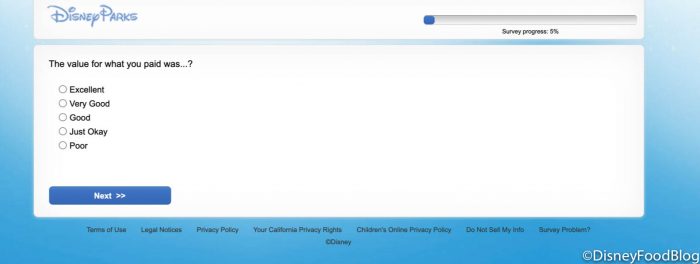 We also thought it was interesting that Disney wanted feedback on our virtual experiences after we used multiple online features, like Mobile Dine Check-in.
