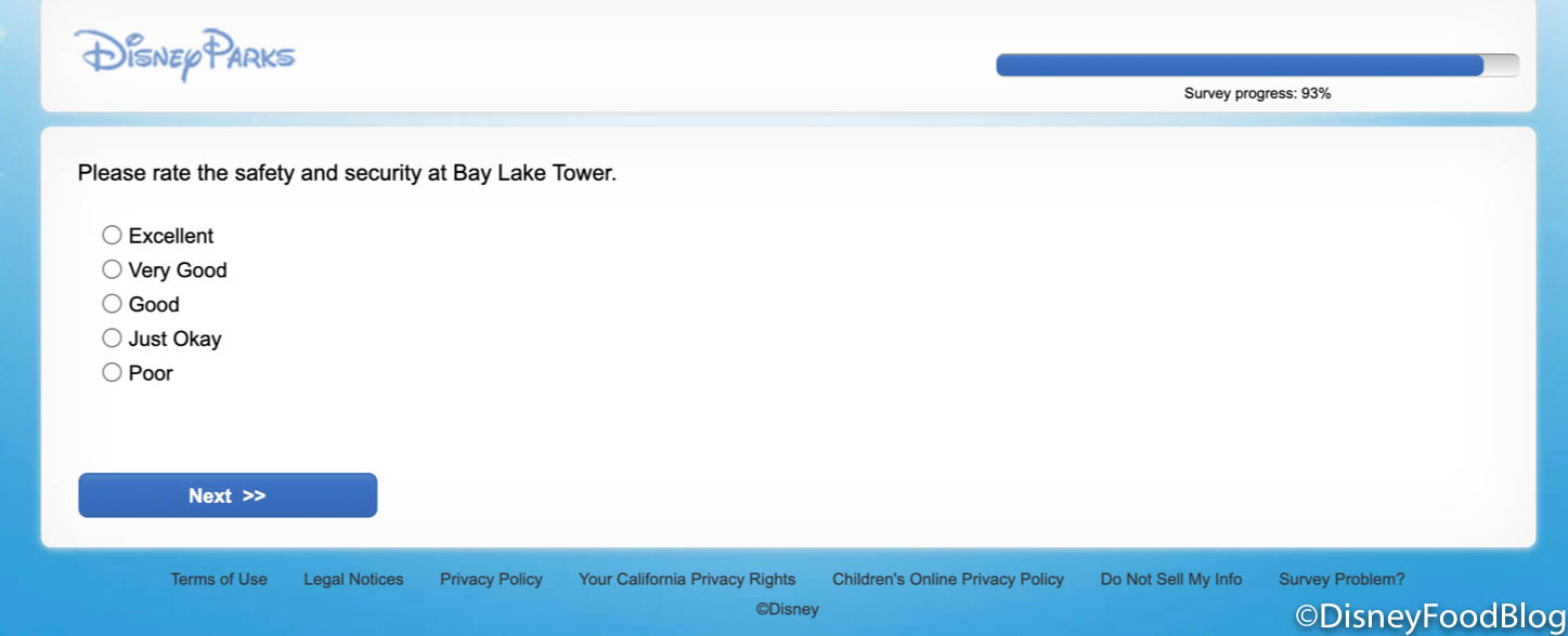 At the end of the survey, we were asked about safety and security at the Disney Resorts.