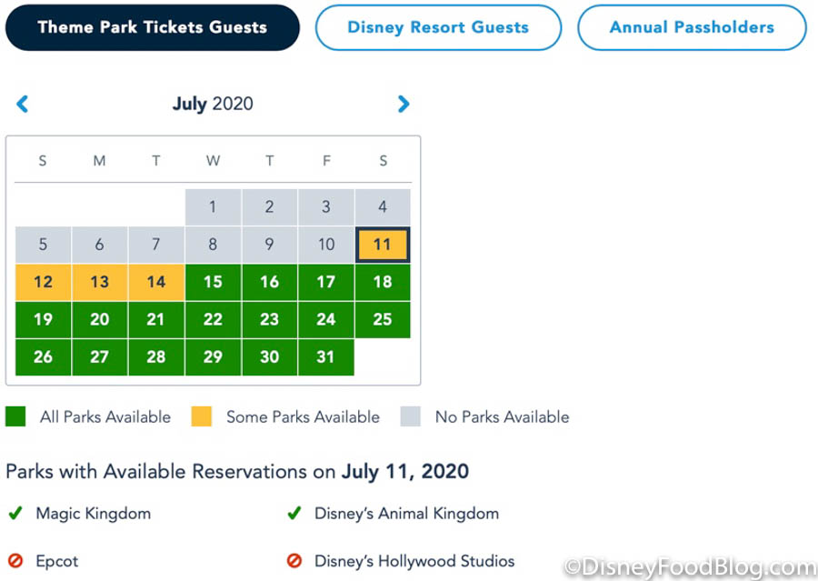 Availability just opened up today for all those ticket holders without Annual Passes or resort reservations. These guests are able to make a reservation for each day of entry for the number of days they have tickets. As a reminder, Park hopping is temporarily suspended, so they will be limited to one park per day.