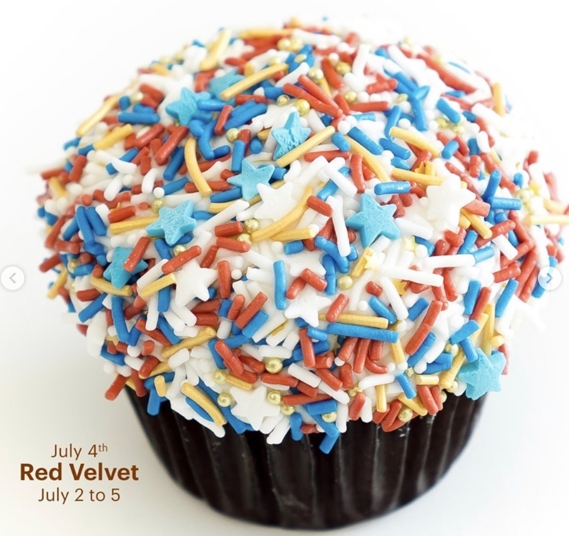 And from July 2nd to July 5th Sprinkles will be celebrating Independence Day with this Red Velvet Cupcake topped with red, white, and blue sprinkles!