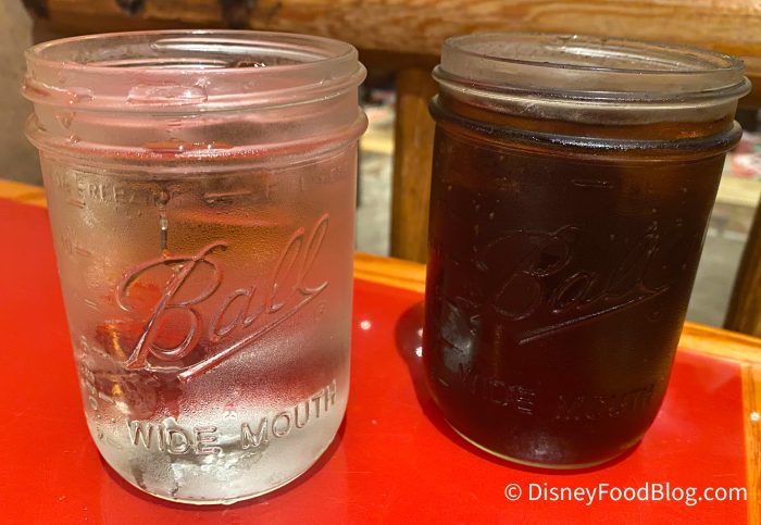 One of the memorable features of Whispering Canyon Cafe is the zany and sassy service from the Cast Members! In the past, we’ve seen the servers do just about everything from pony races around the restaurant to gallon-sized mason jars of drinks! If you ask for a large drink, you may get WAY more than you bargained for! Unfortunately when we visited, we were told those weren’t available, so our drinks were brought out to us in a standard mason jar.