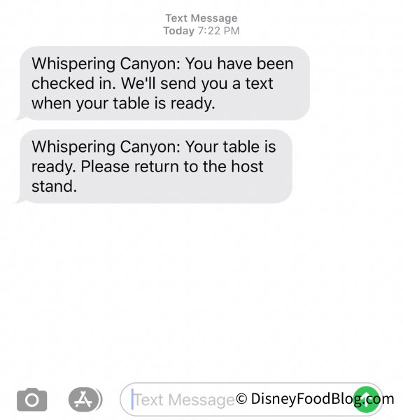 Like many of our other dining experiences this week, we used the new Mobile Dine Check-In to let Whispering Canyon know we had arrived for our reservation!