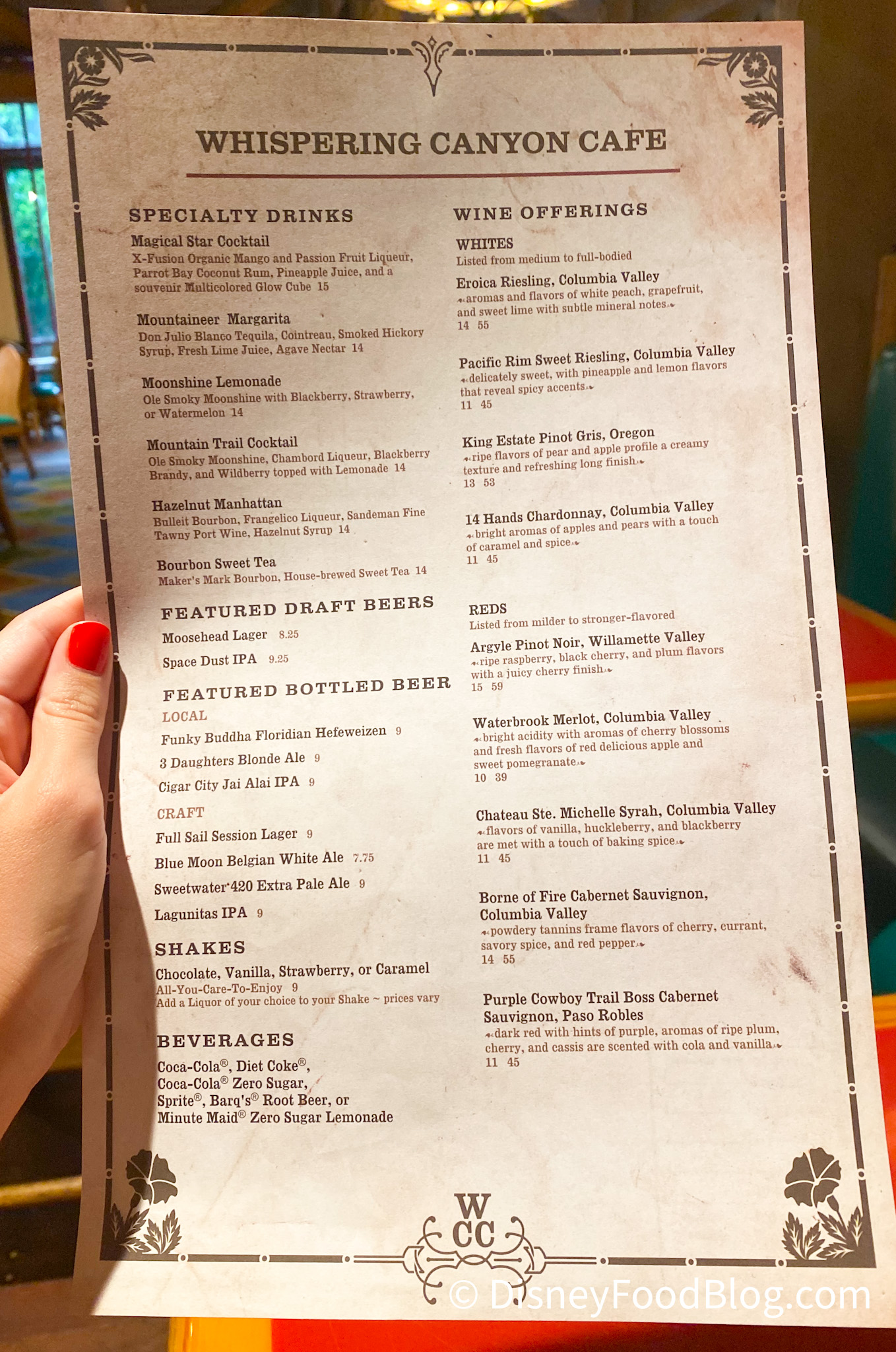 - You’re looking for a quiet, romantic vibe. Even with the stunted waiter interactions, Whispering Canyon Cafe still makes for a louder dining experience. If you’re at Wilderness Lodge and looking for a romantic dinner, check out Storybook Dining at Artist Point when it reopens!