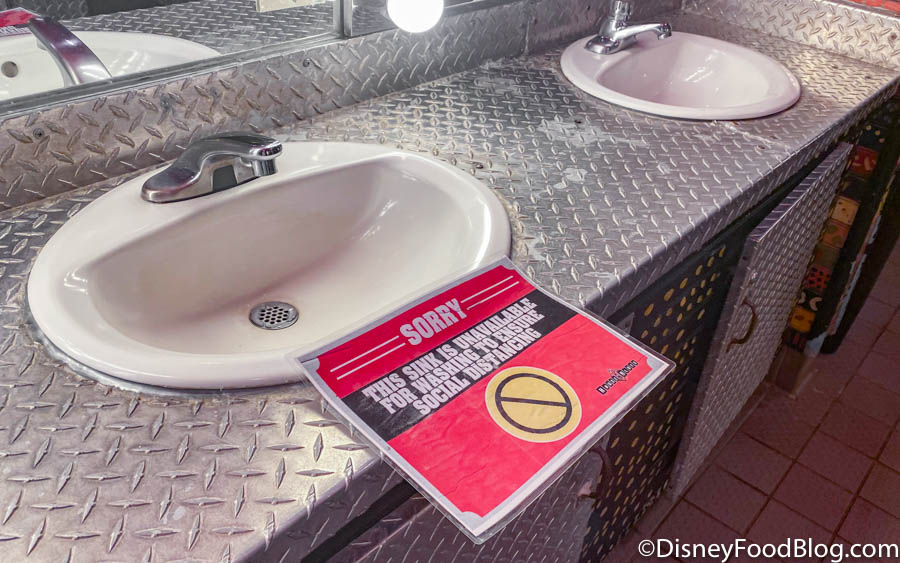 These spacing guidelines carried over into the bathroom with some sinks unavailable for hand washing.