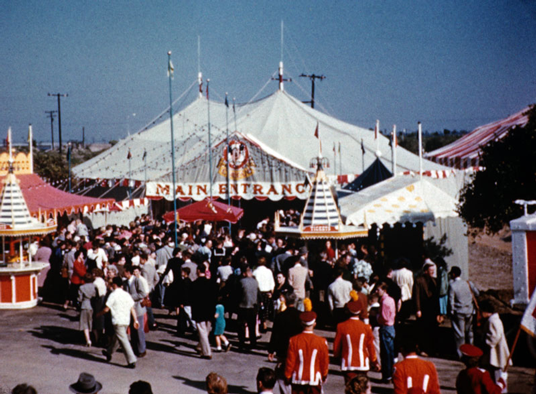 We’re traveling WAY back in time for our next show! The Mickey Mouse Club Circus debuted in Disneyland during its inaugural year of operation, in November of 1955. The show was held in a big top tent behind Fantasyland, where admission at the time was 50 cents for children and adults. If you wanted reserved seating, it would run you a whopping $1.00 per person.