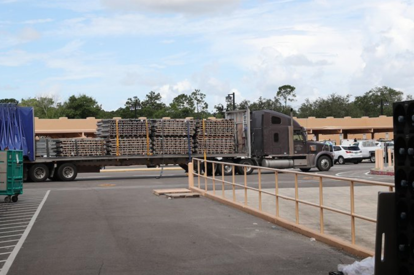 Did somebody order some new flooring? At first glance, it certainly appears that way! But actually, this photo was posted on the NBA’s Twitter account this morning with the caption, “Laying down the practice floors!” It seems they’ve trucked in several NBA teams’ floors on flat truck beds all the way to Disney World!