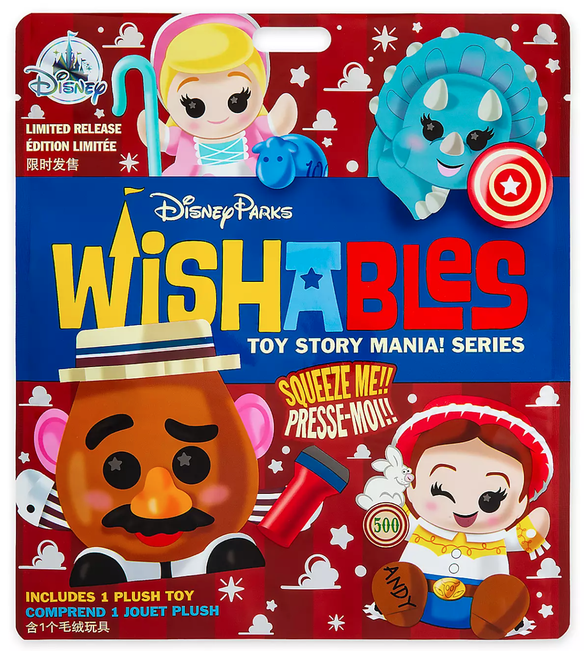 We can see why this set sold out lightning-fast! Each one of the new Toy Story Mania Wishables is a total mini plush masterpiece! The Mr. Potato Head Wishable even has an outline of the little compartment to store his parts on his back!