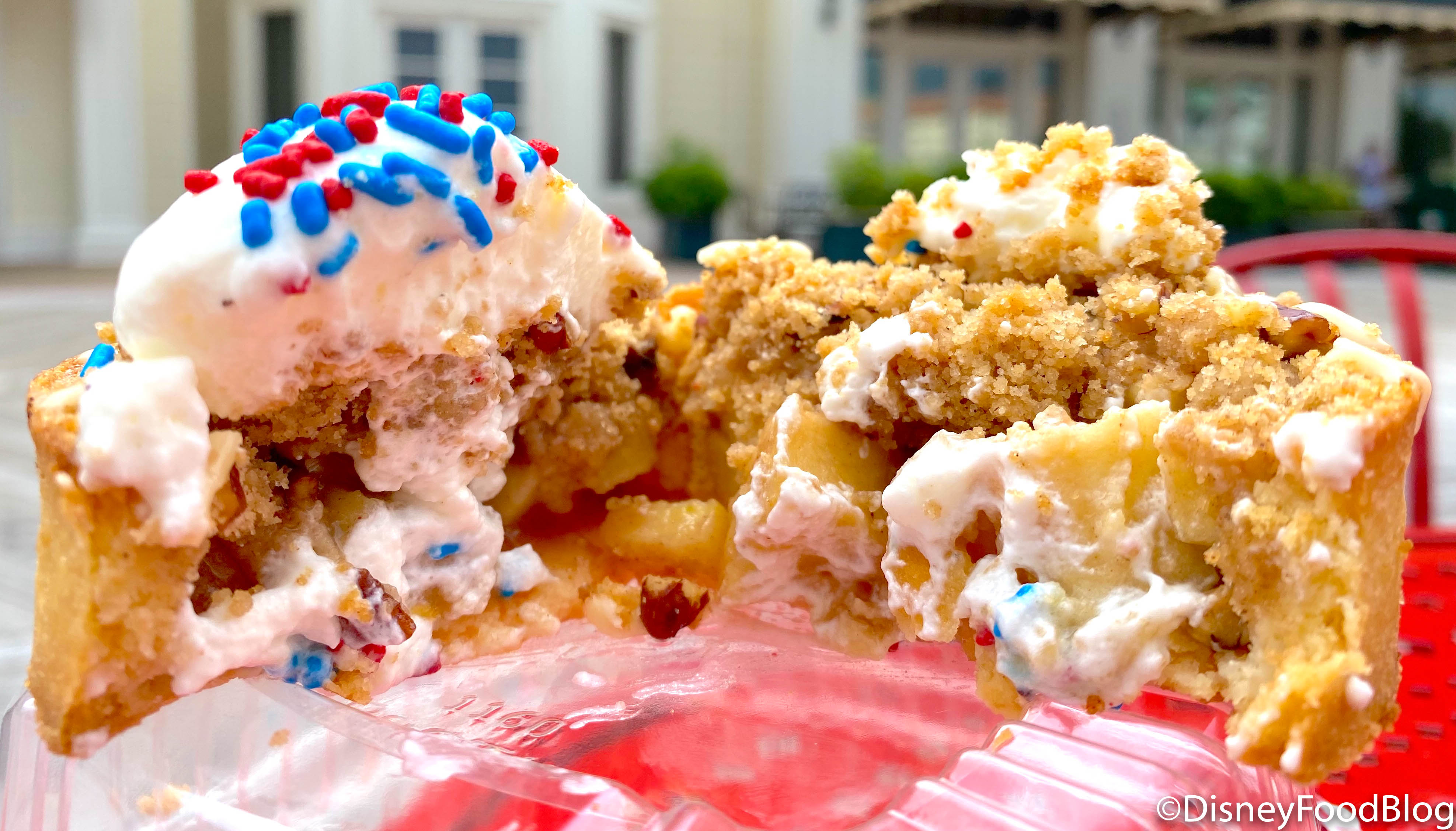 The inside has bits of soft apple with a kick cinnamon flavor that’s perfect for all the apple pie lovers out there! While the American Apple Pie is served cold, we actually think that it would be GREAT to take home and pop in the microwave so it’s warm like a fresh pie out of the oven. Plus, while the whipped cream was nice, we think some vanilla ice cream on top would make it the ultimate festive treat for the Fourth of July!