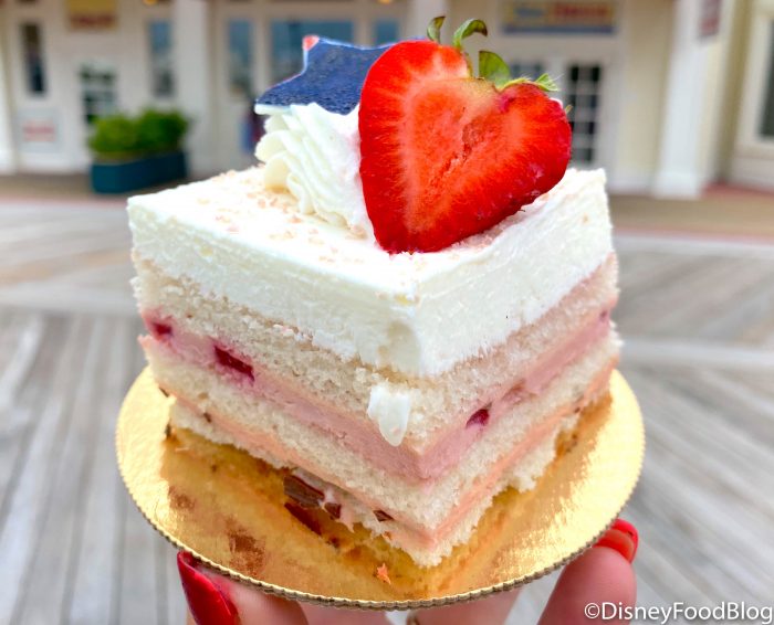 We’re snacking our way around the Disney Resorts wearing our stretchy shorts (there are just so many good treats)! Although we’ve already fallen in love with SO many red, white, and blue treats like the patriotic Peanut Butter Pie and Fourth of July Cupcake, we’re back at the BoardWalk Bakery for a whole array of festive treats.