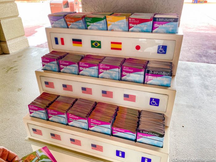 Located near the entrance to Magic Kingdom, we found this display of maps available in many different languages.