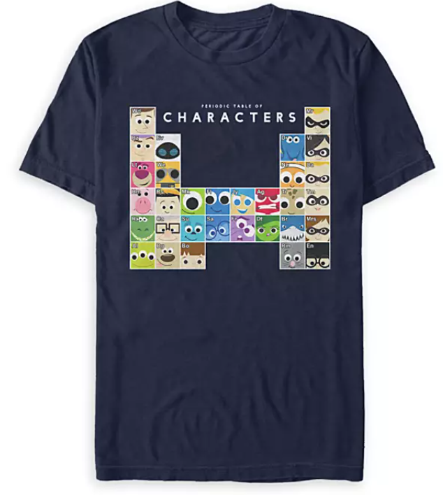 This next one is seriously so cute. Look at the Pixar Periodic Table of Elements T-Shirt for $26.99.