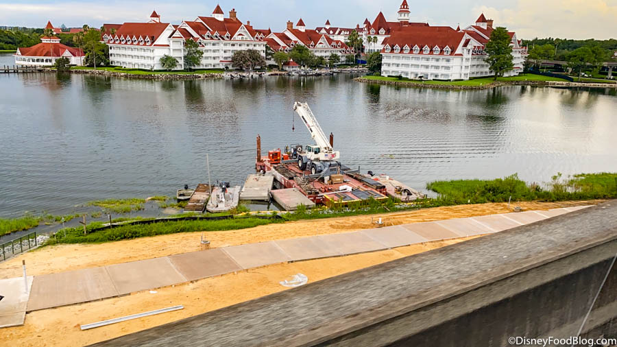 We recently saw a curious-looking big blue wall go up in the middle of Disney’s Grand Floridian Resort & Spa. (Spoiler: it was installed to isolate the visiting NBA players from Disney guests.) While taking a ride on the monorail, we noticed progress on a different Grand Floridian construction project we’ve been keeping our eyes on for a while.